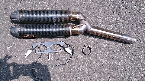 カスタムしたマフラーやエンジンケージ、スプロケットは外して、購入時の状態に戻しました。